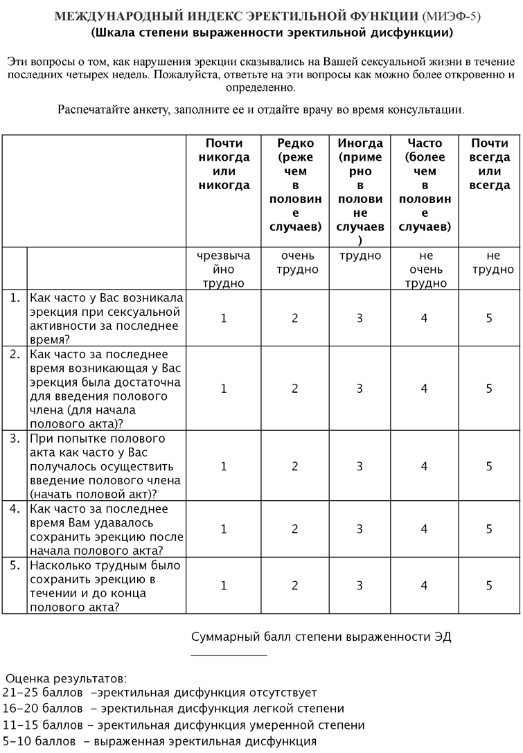 Тест 1. Международный индекс эректильной функции (МИЭФ-5)